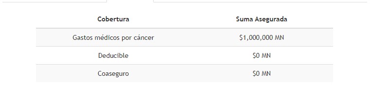En caso de diagnóstico de algún tipo de cáncer cubierto por la póliza, recibirás en forma anticipada y por única vez $100,000 MN de suma asegurada. El resto se indemniza de acuerdo a lo siguiente: